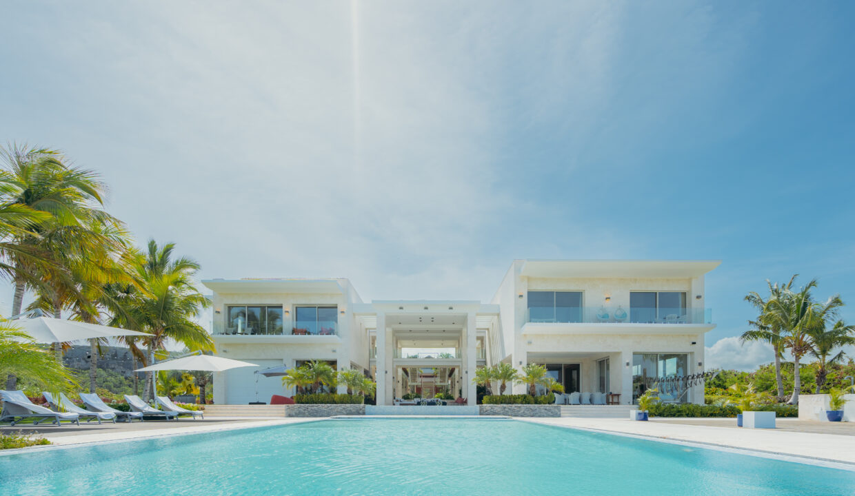 La villa cuenta con 6 amplios dormitorios, 7 baños, sala, comedor, cocina equipada, zona de servicio y una gran terraza donde una impresionante piscina destaca como protagonista del espacio exterior.